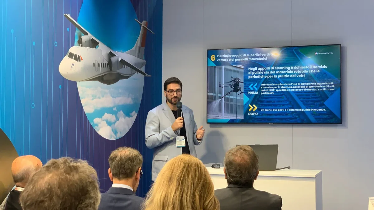 In questa occasione ha presentato Skywash, il servizio esclusivo di Unmanned4You che sta rivoluzionando la pulizia e la manutenzione di superfici verticali, vetrate e pannelli fotovoltaici grazie a droni autonomi, efficienti e sostenibili.